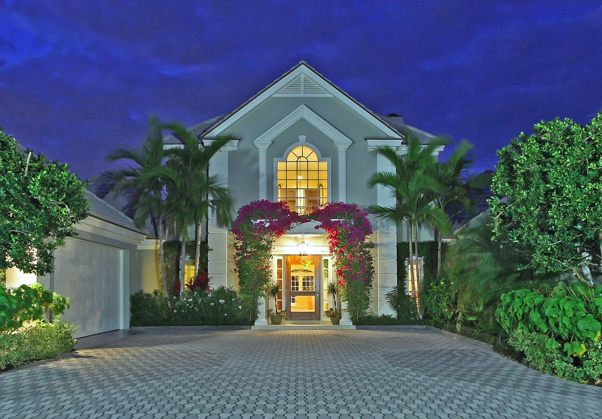 This new custom-built home, lushly landscaped with tropical plants, offers the opportunity to dock a hundred and thirty foot yacht. The magnificent waterfront residence is located within one of Palm Beach’s most exclusive golf communities with ocean access. Exquisite detail, including intricate stonework, enhance this spectacular home and offer the perfect blend of classic elegance and charm. Some of the features include the sumptuous living room with panoramic views, soaring ceilings and marble floors, a fireplace, cypress beams, and impact glass windows and doors. Adjacent to the kitchen, the family room offers built-in cabinetry, marble floors, cypress beams and access to the pool and outdoor entertainment space with fireplace and summer kitchen. Other features include: Barrel tile roof imported from France, poured concrete second floor, elevator, three car garage, vanishing edge 50 ft pool and spa, and two separate guest homes to accommodate staff or guests.