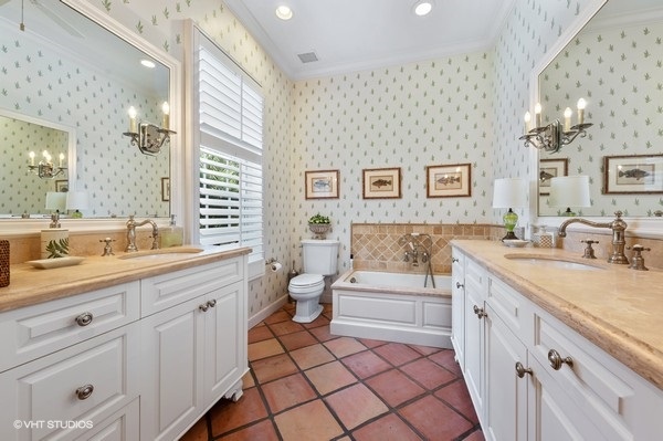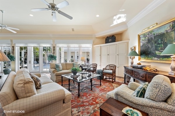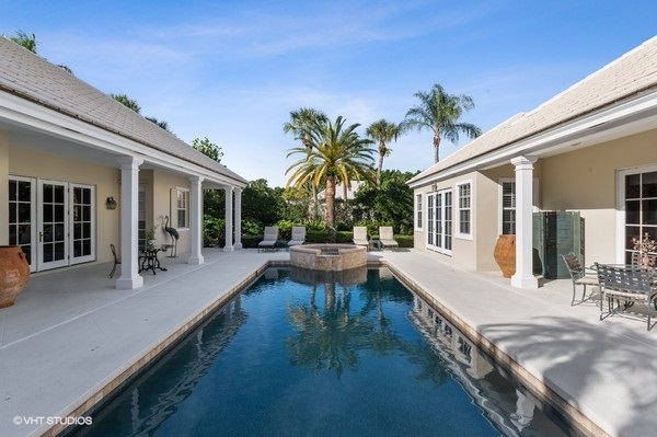 This Bermuda inspired residence is conveniently located near the main club, fitness center, Beach Club, Chapel and library. This home is the perfect place for a family retreat. The main house features the master bedroom with study, greatroom, kitchen and dining area. The covered walkway and porch makes easy access to the 3 bedroom guest house complete with kitchenette, washer and dryer. Enjoy the courtyard heated pool and spa. The entire house is equipped with a Generac generator.
